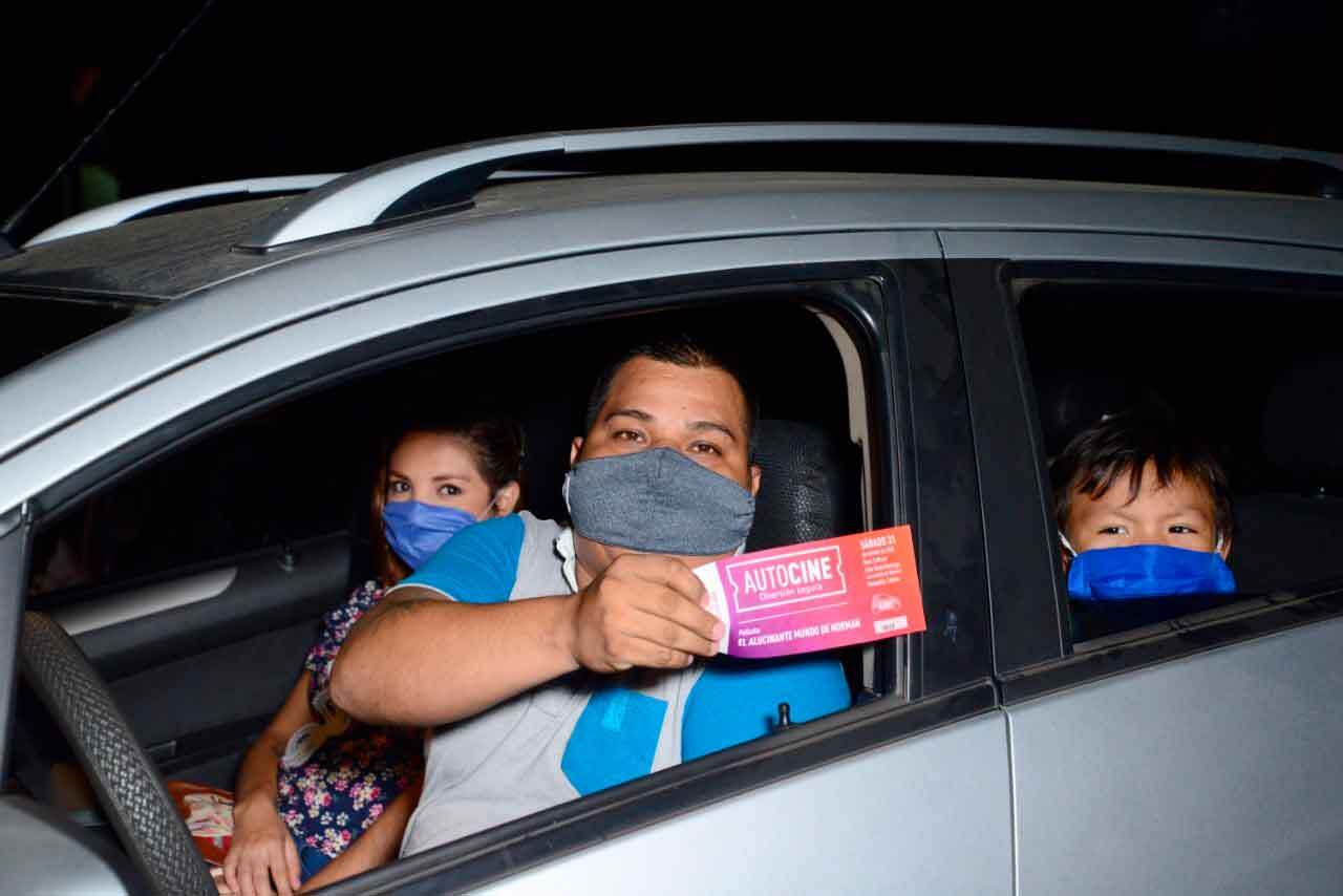 Como parte de la dinámica, los asistentes pudieron disfrutar de las funciones de cine, de manera segura dentro de sus vehículos, guardando distancia, para evitar la propagación del nuevo coronavirus SARS Cov 2, que causa la enfermedad del Covid 19.